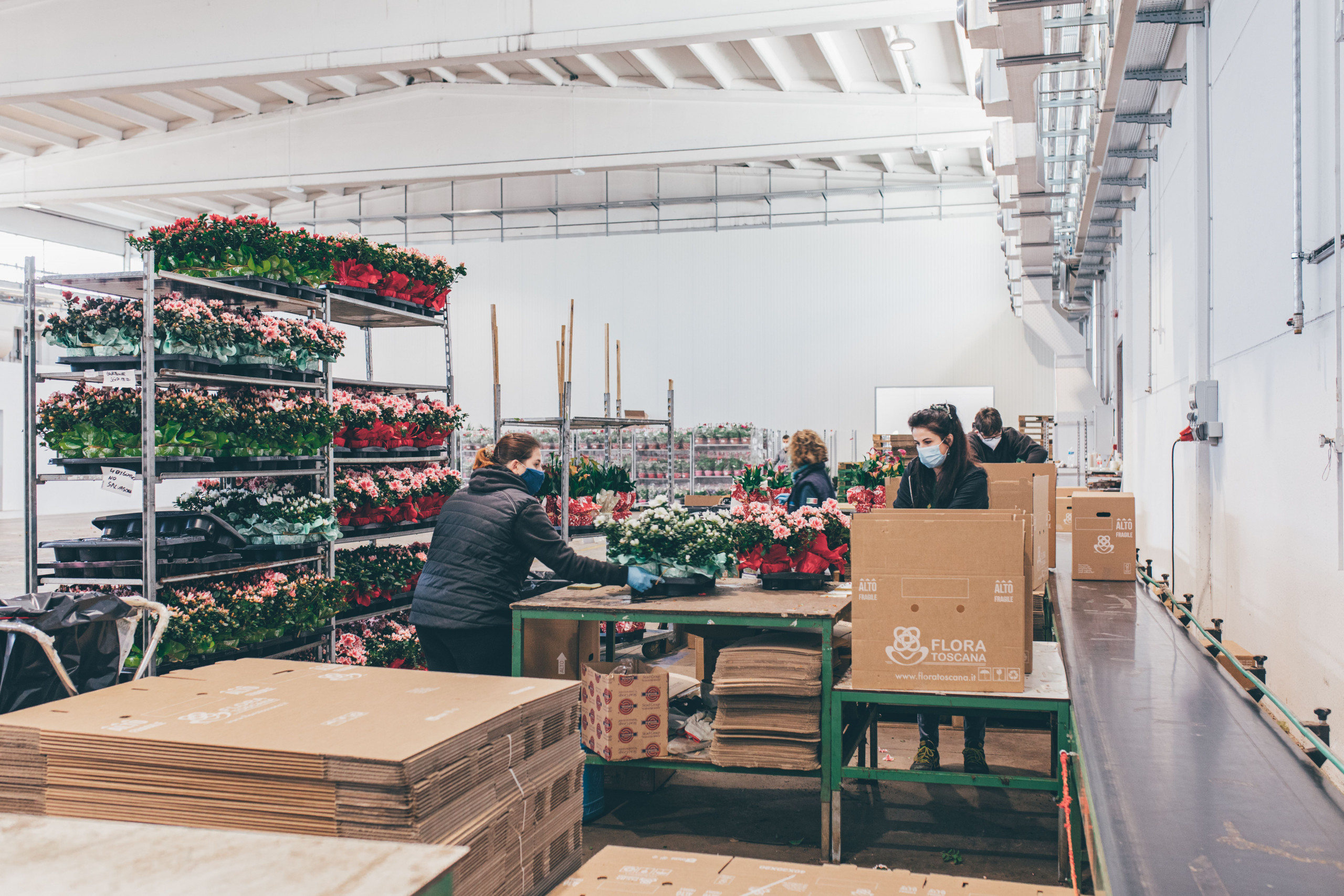 Grazie alla propria organizzazione dotata di 4 linee semi – automatiche Flora Toscana è in grado di garantire una efficiente trasformazione, standardizzazione e confezionamento del prodotto dalla stampa etichette con barcode, con la possibilità di corredale di QR code e qualsiasi altro tipo di informazione richiesta, alla preparazione anche di mini pack con trasporto in cartoni/pallet o su carelli cc. Su richiesta personalizzazioni e/o Private Label.