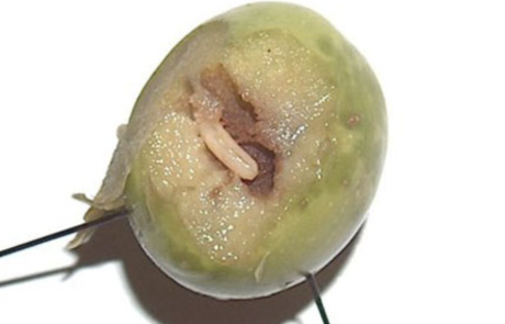 - Campionare 100-200 olive verificando la presenza di uova, larve di prima, seconda e terza età, pupe e fori d’uscita